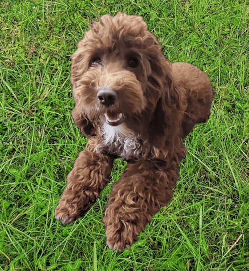 Toby is our beautiful tri colored moyen (means medium) poodle. Toby weighs 22 lb. and is pure love!